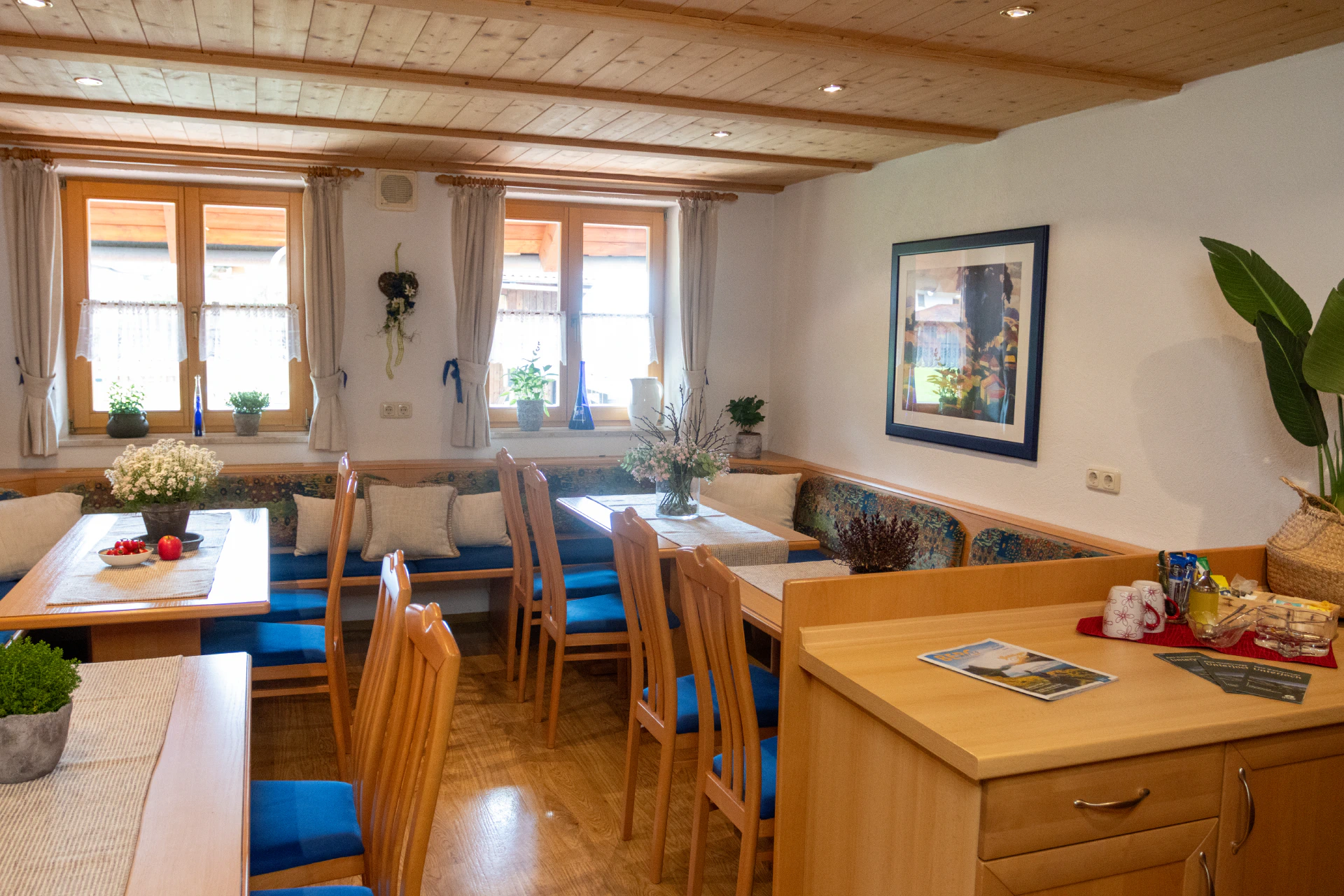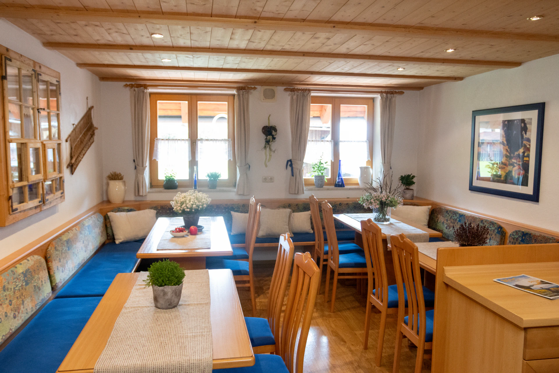 In unserem liebevoll eingerichteten Aufenthalts Raum auch “Stuben” genannt, findet ihr alles für entspannte Stunden: Eine kleine Tee- und Kaffeeküche lädt zum Zubereiten heißer Getränke ein. Im Kühlschrank stehen Kaltgetränke zur Selbstbedienung auf Vertrauensbasis bereit. Außerdem liegen zahlreiche Broschüren und Flyer mit Tipps zur Umgebung für euch aus. Perfekt für gesellige Spielrunden an Regentagen oder einfach zum Verweilen und Austauschen.